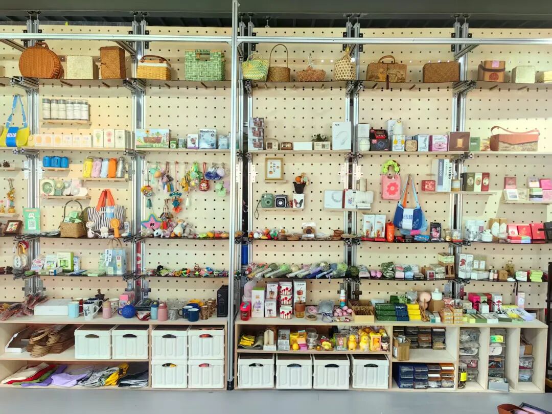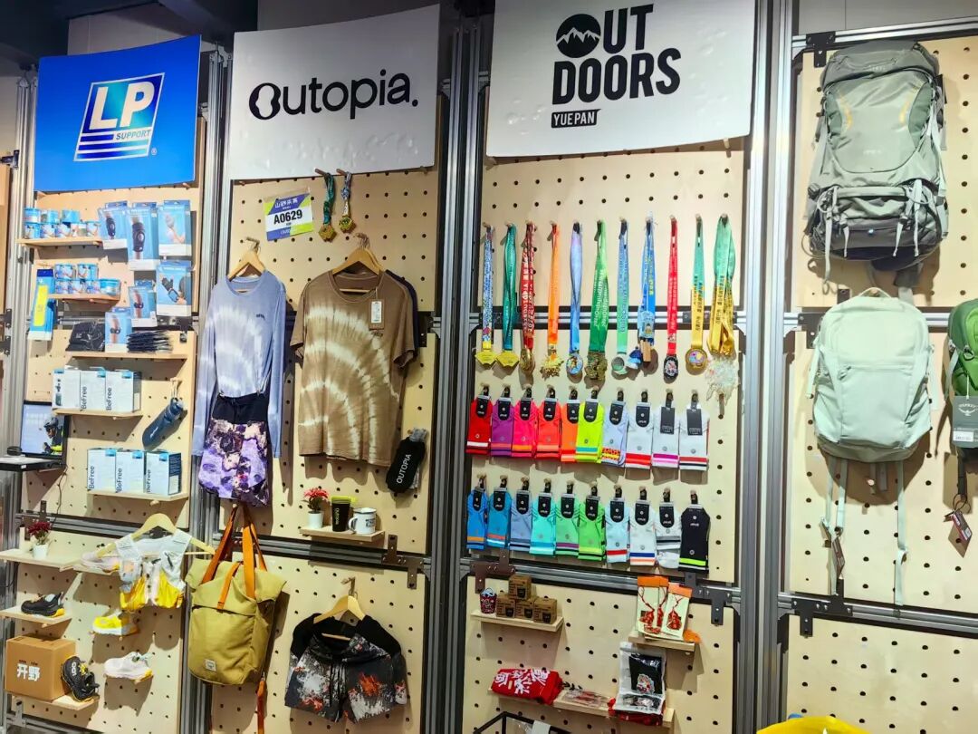 墙面上摆满了形形色色的物件,既有Outopia、聆音、迈胜、LP等品牌和越野跑相关的产品,也有杯子、挂件、帆布包等精巧可爱的文创。以好物连接热爱,无论是热爱运动还是热爱文艺的你,都能在这里找到支点。