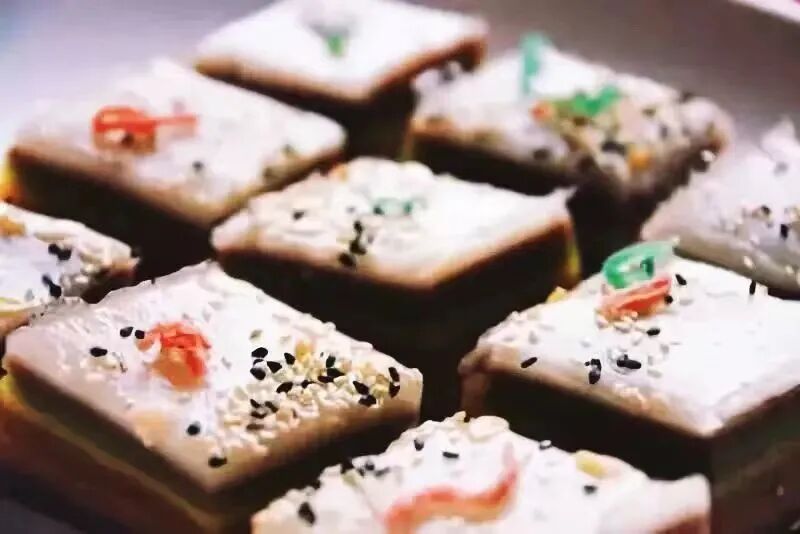 软糯香甜,松软绵密的糕体,搭配上风味不同的各式辅料,一口下去,是包裹不住的传统美味,还有满满的节日浓情。
