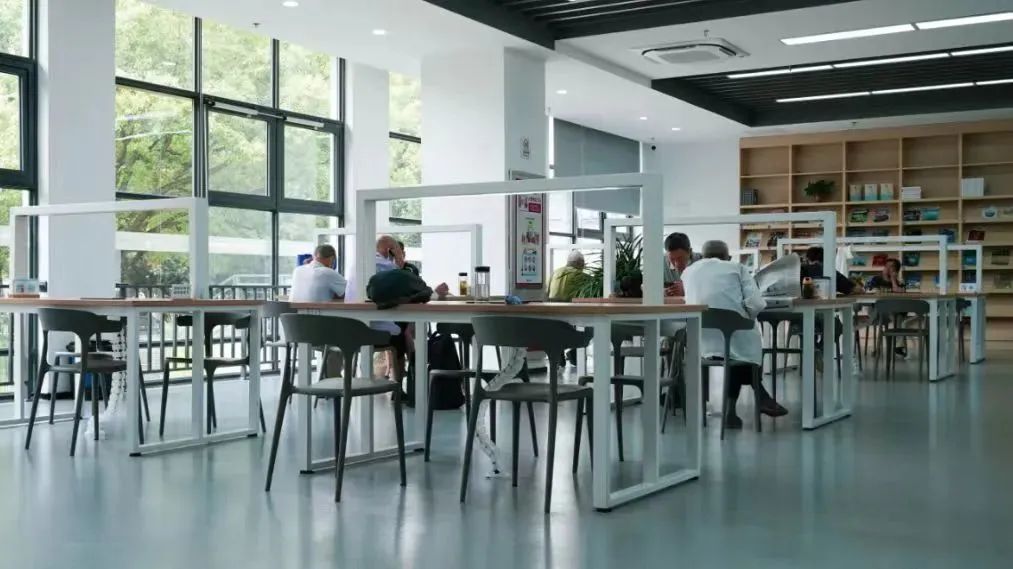 这里的书籍偏重旅游休闲,以散文、小说居多。阅读疲乏之余,还可以欣赏园林秋景。清冷的水面映着黄绿相间的树木,伴着悦耳鸟鸣,也许正是刚刚书里见过的风景呢~