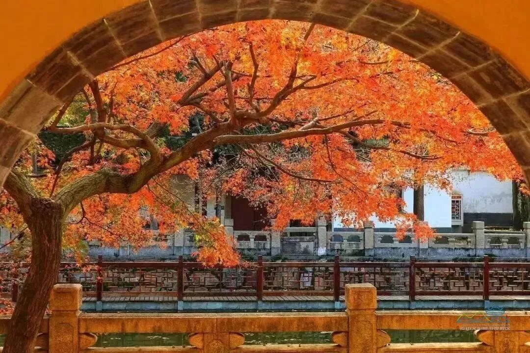 初冬来虞山,绝对不能错过山脚下虞山公园的红枫胜景。簇簇枫叶红艳似火,和园内错落层叠的建筑相映成画。一条枫径蜿蜒幽深,漫步其中,便能和万片枫叶度过一段静美的时光。