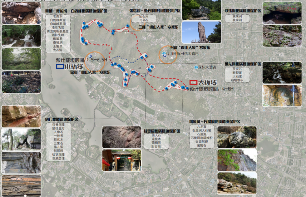 串联剑门、桂香园、桃源涧、破龙涧、联珠洞等7个地质遗迹保护区,以地质科普研学为主题,展现硅化木、彩云石、断裂面、包卷层理等虞山不同地质遗迹,分为12.3公里和4.7公里大小两个环线。