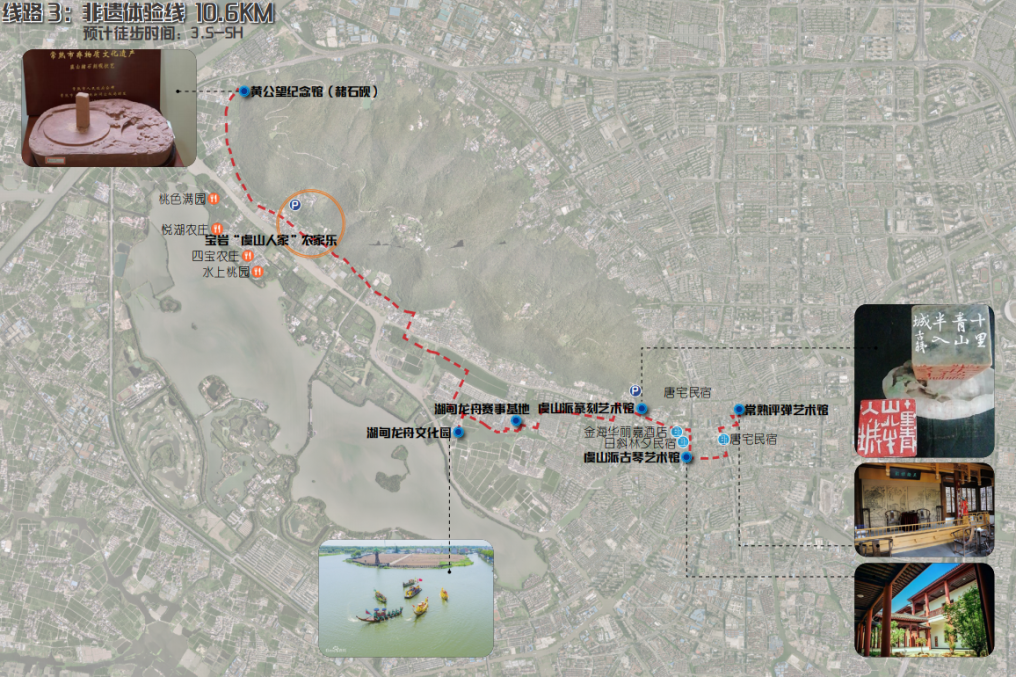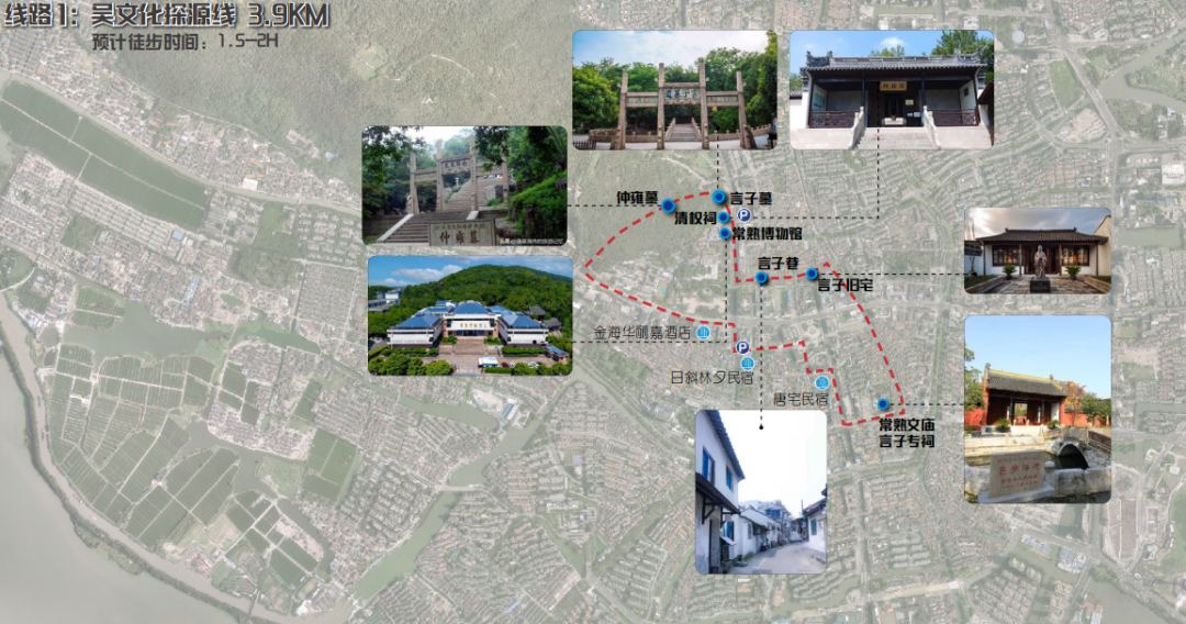 串联常熟博物馆、言子仲雍墓、文庙、古琴艺术馆、方塔园、黄公望纪念馆、虞山印派艺术馆等31个点位,内含总长3.9公里的吴文化探痕线、总长度4.6-7公里的虞山文化流派线、总长度10.6公里的非遗体验线、总长度5公里的红色文化线等4条细分路线。