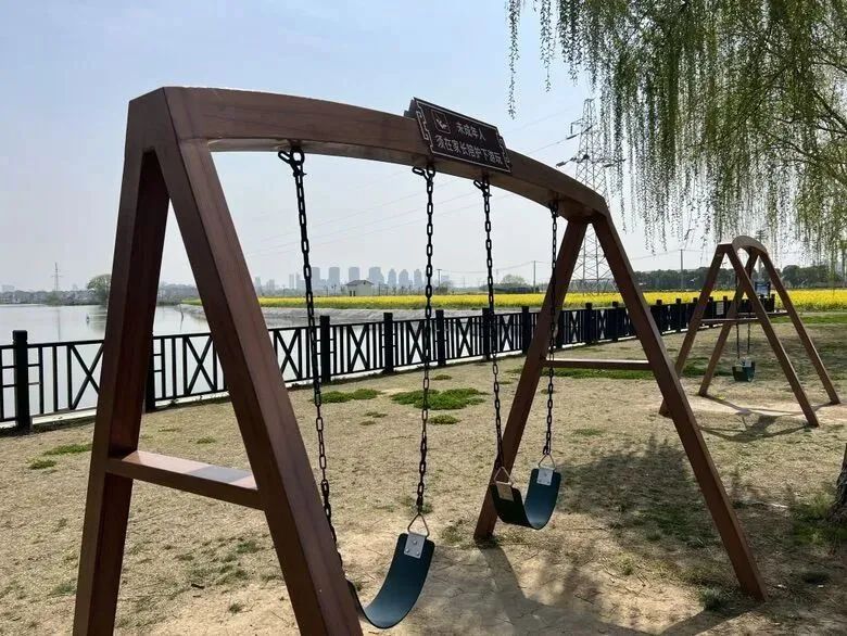 花海旁,还设置了秋千等亲子游玩设施。春风温柔拂面,慢悠悠地荡着秋千,眼前花开灿烂,于身于心都是一种美好的体验。
