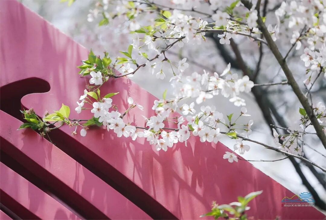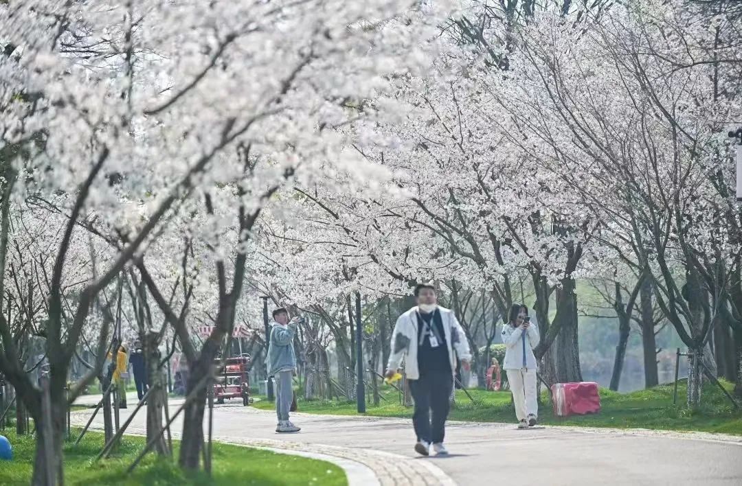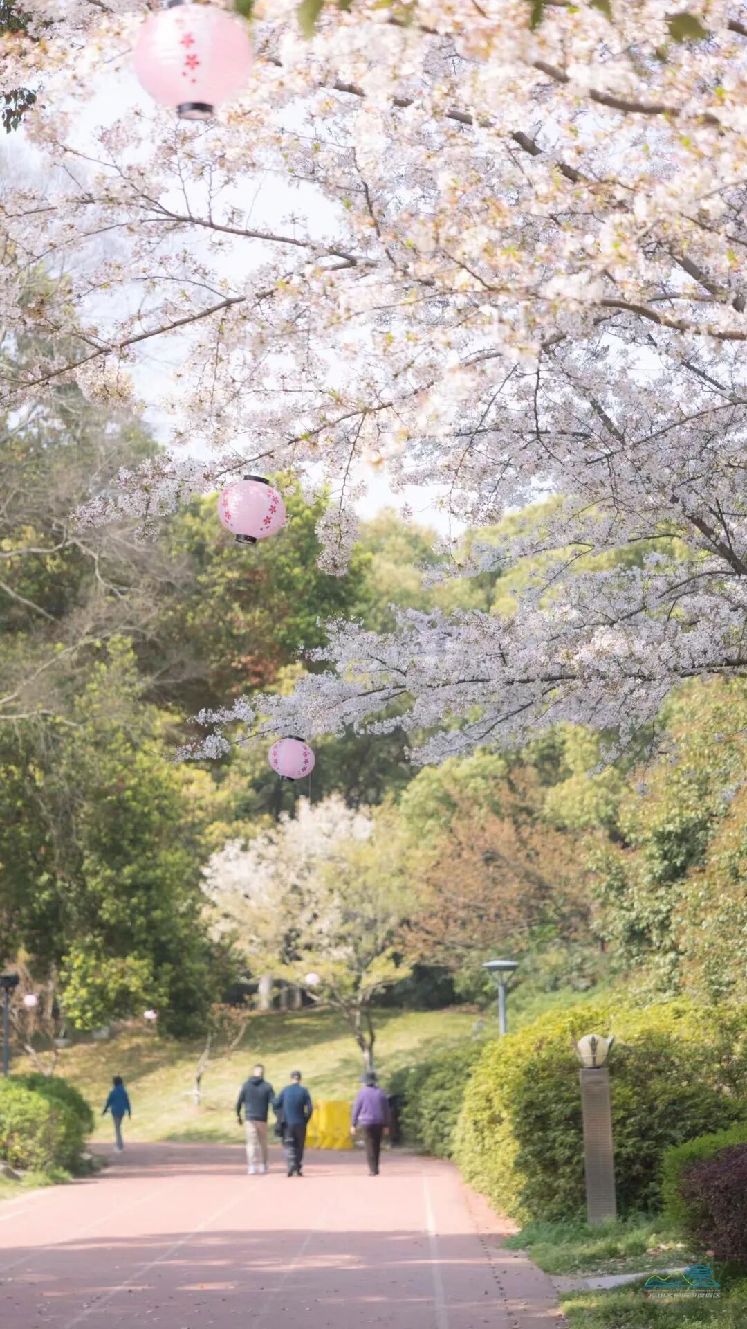 尚湖也有一条樱花大道,两侧粉白相间,给湖光山色又添了几笔风姿。