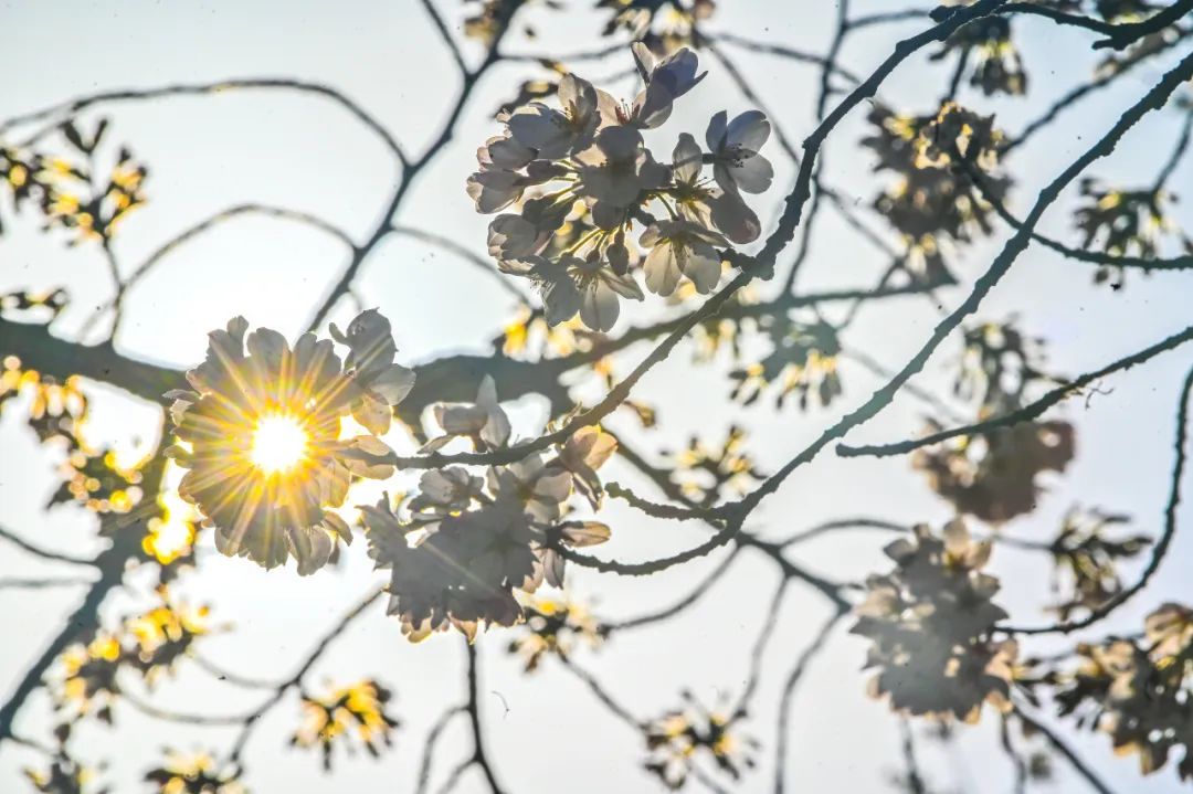 不同的光线拍出来的效果不同。顺光可以最大程度还原樱花的粉嫩色彩,像童话一样;但是逆光来拍,在光的照射下,花瓣会显得很通透,拍出来的樱花更有轮廓感和层次感,就像故事。