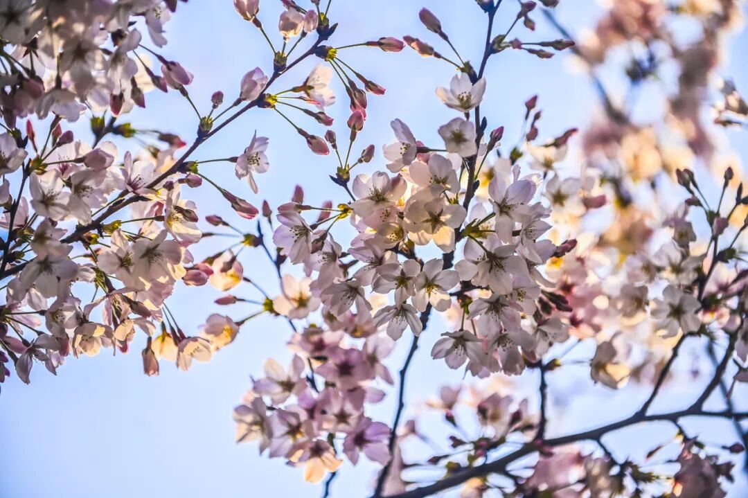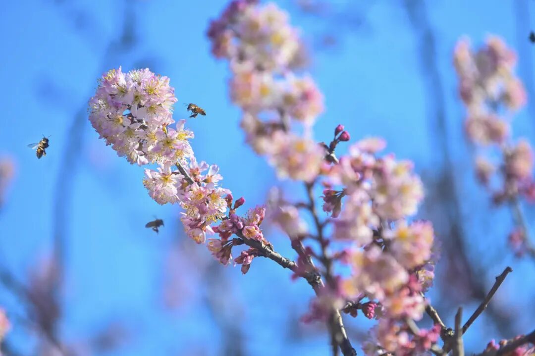 如果感觉背景太杂,就用长焦拍特写,展现每一朵樱花的细节美。说不定还能拍到些蜜蜂和小鸟的趣味画面呢。