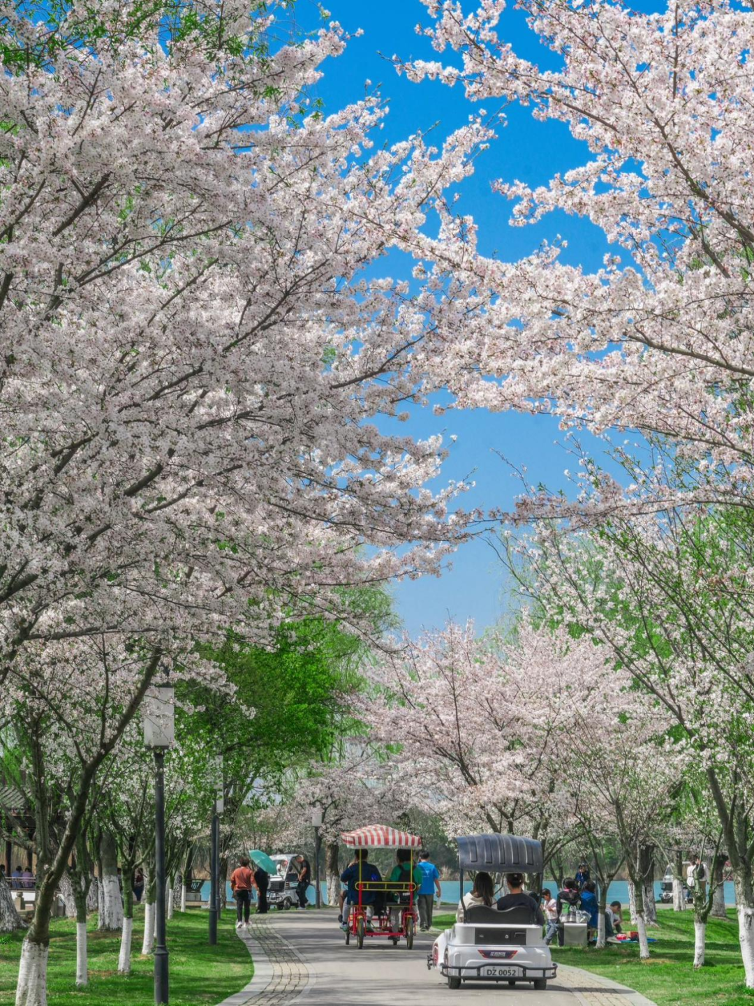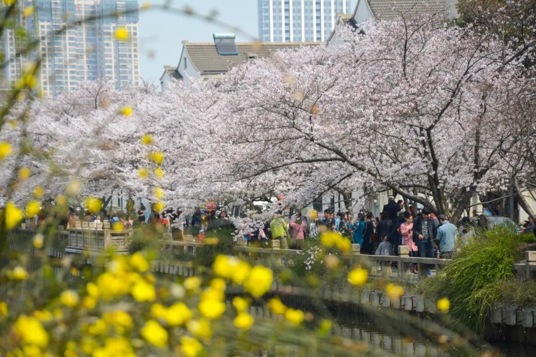 那你算是问对人了。首先肯定是大家都知道的 护城河畔 。这里赏花的人会比较多,但是也能看到樱花盛放在江南水乡里的诗意画面,真的很美。