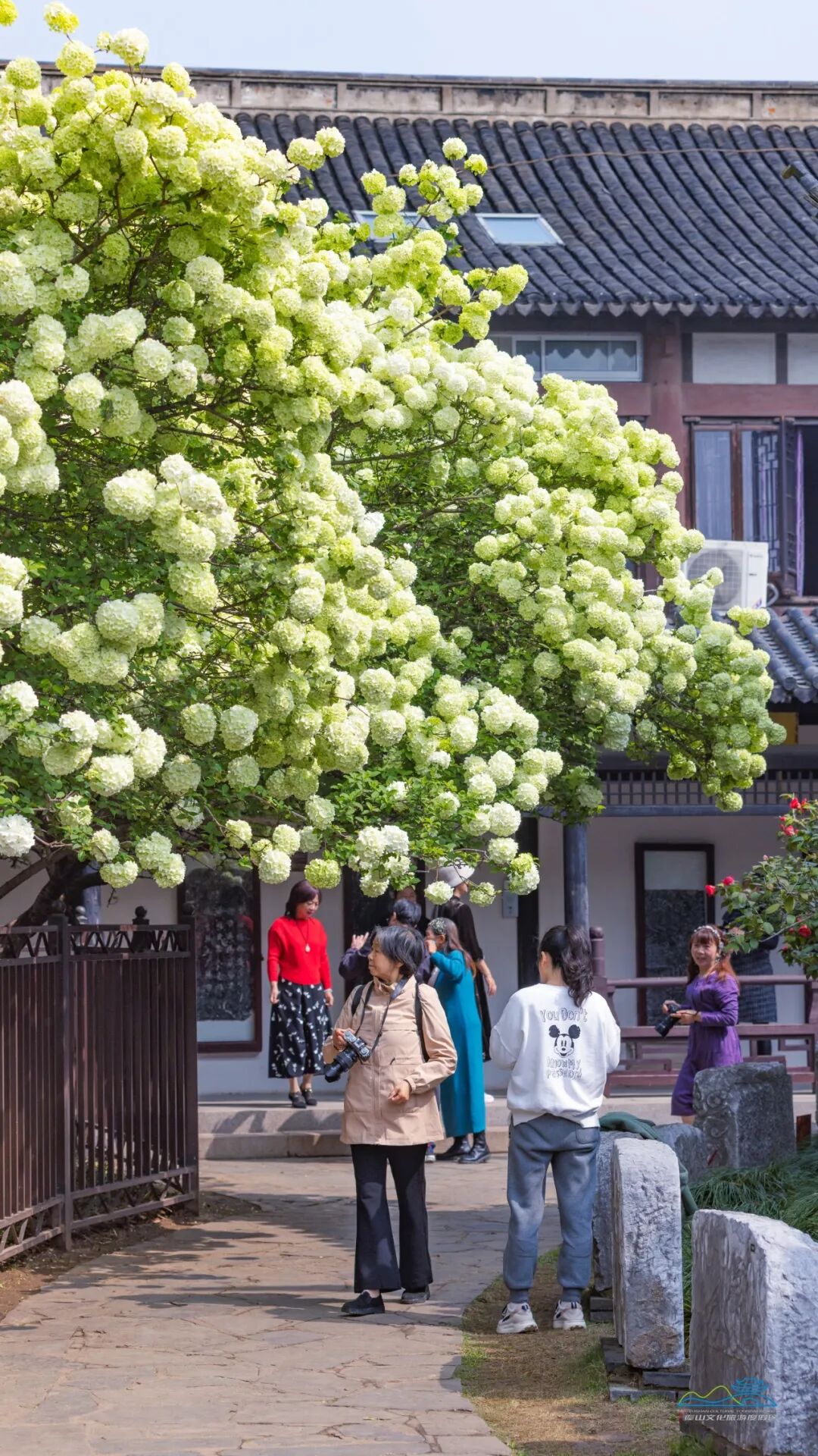 迎着四月暖阳,花墙上花朵们正肆意生长,娇艳绽放。沿着白墙黛瓦、雕花漏窗,营造着江南风情的春日浪漫。人往那儿随意一站,就很好看。