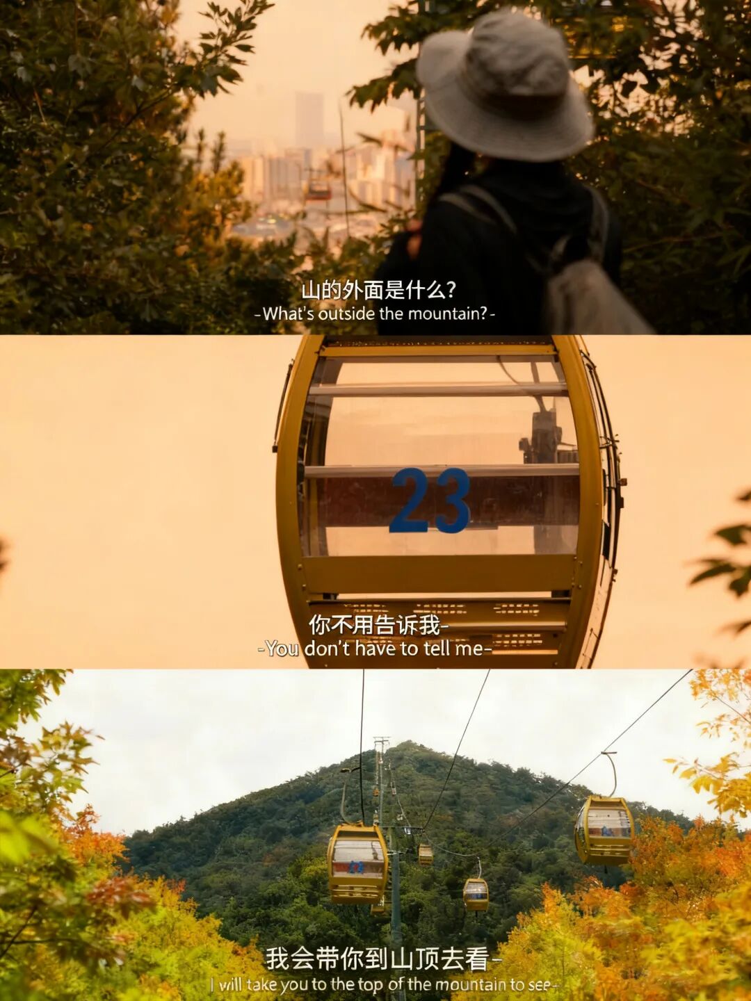 “山的外面是什么?” 你真想知道?那就坐上缆车 随着车厢的缓缓升高 从几棵树木到整片山林 秋天的橙黄橘绿都撞进眼里 视野渐渐开阔起来 直到缆车带你抵达山顶 俯瞰湖田 眺望山外的远方
