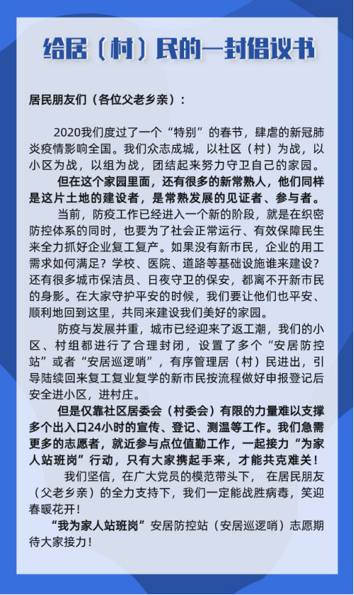 随着返常复工人员不断增多,为加强防控管理,社区制作“临时出入证”发放给居民以及符合防疫规定的来常(返常)人员,便于道口值勤人员核对,缩短查验时间提高通行效率,保障返常人员顺利进入小区(村庄)。