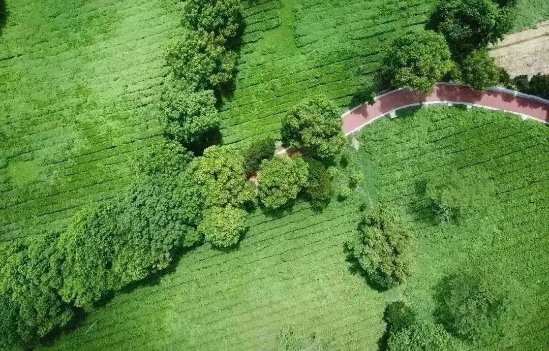 红色步道蜿蜒而过,两边茶田百亩,片片茶叶青绿,缕缕茶香诱人,是视觉与嗅觉的双重体验。此刻日光作火,大地当炉,已“煮”好一壶香茶,等你许久。