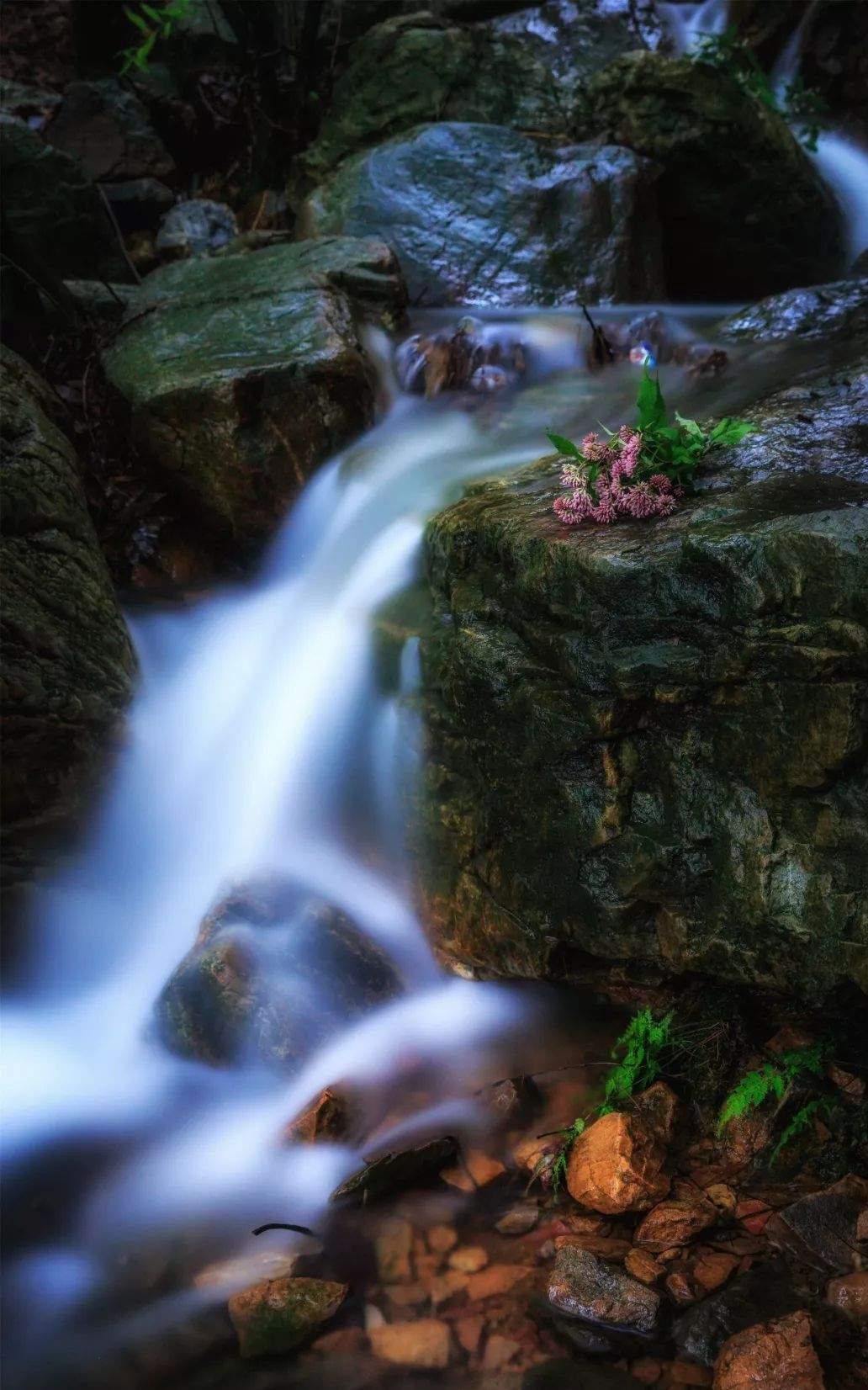 一场雨后,泉水盈满山涧,在陡峭处高歌,于平缓处浅唱。望着水流缓缓淌过,如同目送一位婉约多情的女子,撑伞走过江南的烟雨。