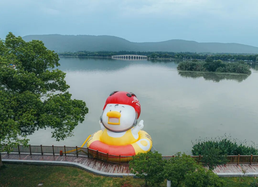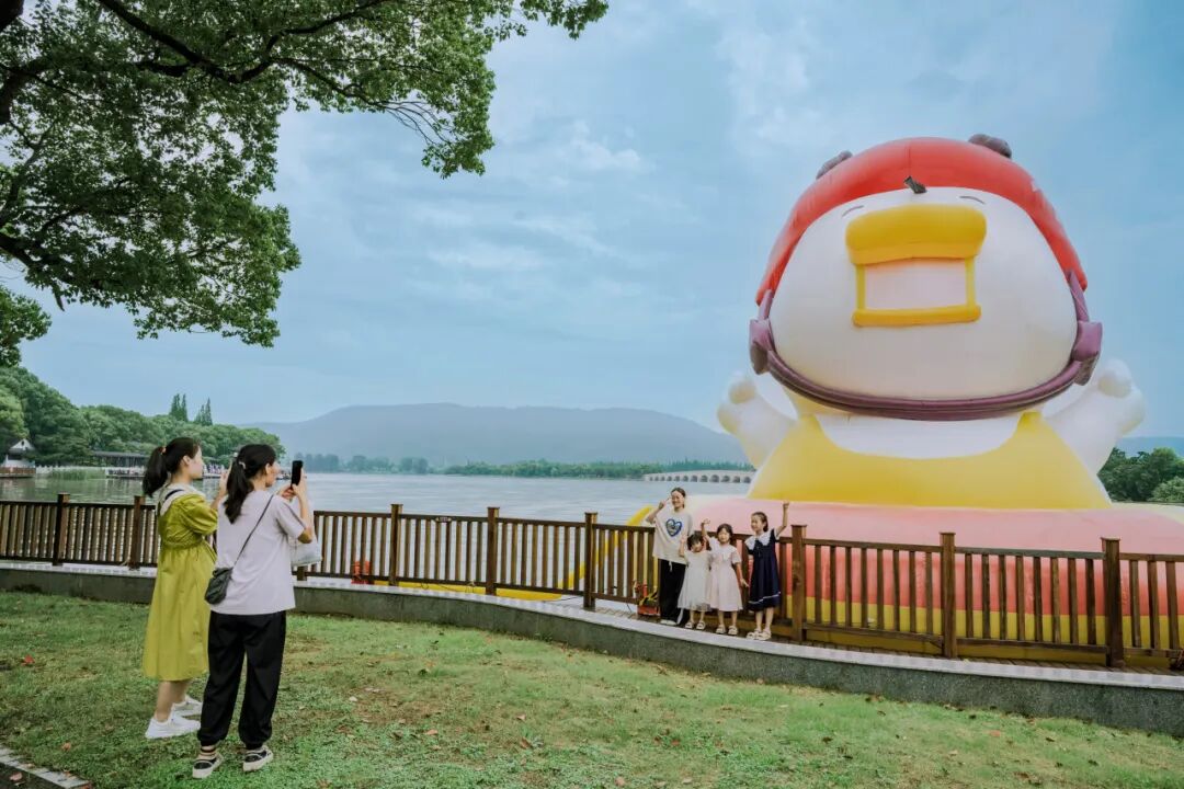 热烈鸭作为电影发行方精心准备的线下预热活动,上一站已在南京玄武湖畔亮相,今天热烈鸭游到了虞山文化旅游度假区尚湖风景区。