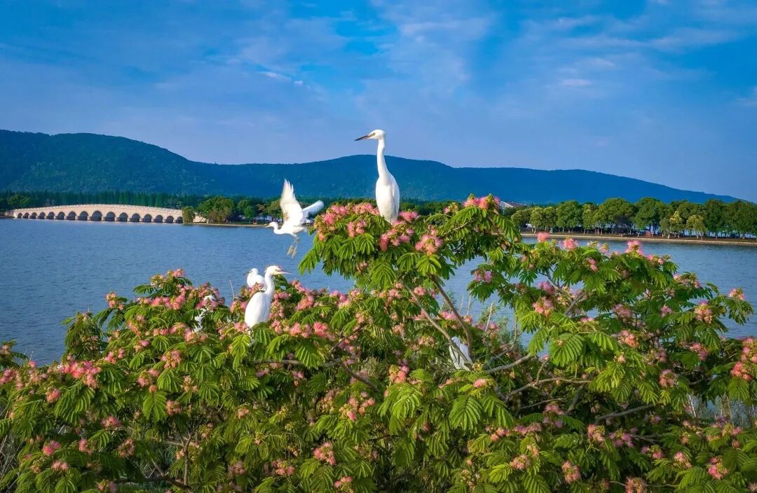 尚湖边的林间也闪烁着一群可爱的身影,灵动鲜艳。秋色也因此不再寂寥,多了几分生机与活力。