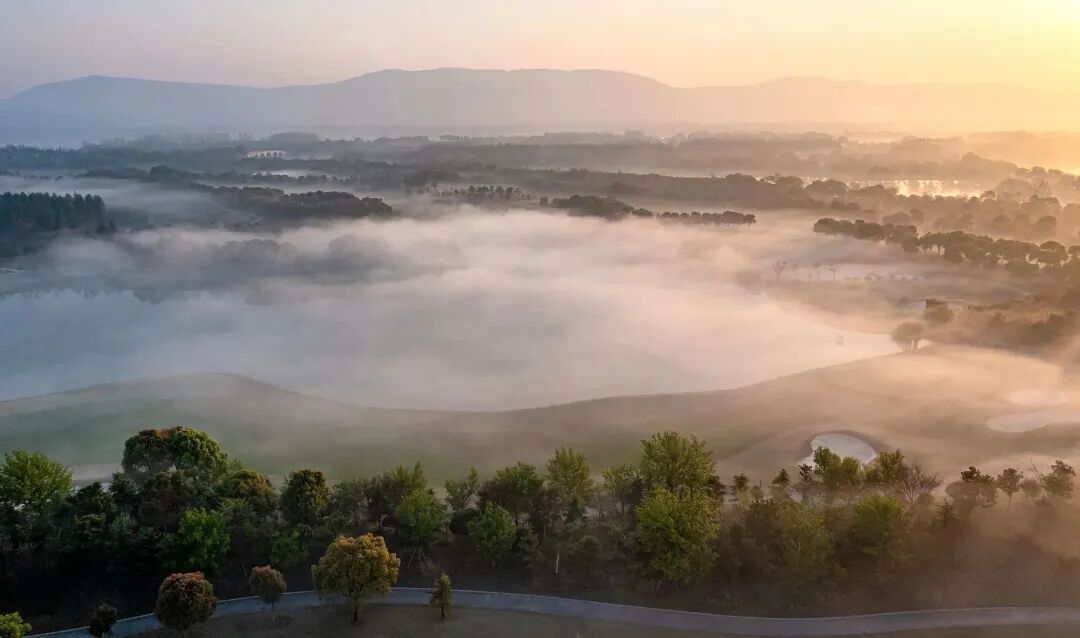 当露水映射第一缕晨光,秋日的虞山也渐渐苏醒。水珠氤氲在半空,织成薄薄的雾,给青山披上一层神秘的纱。