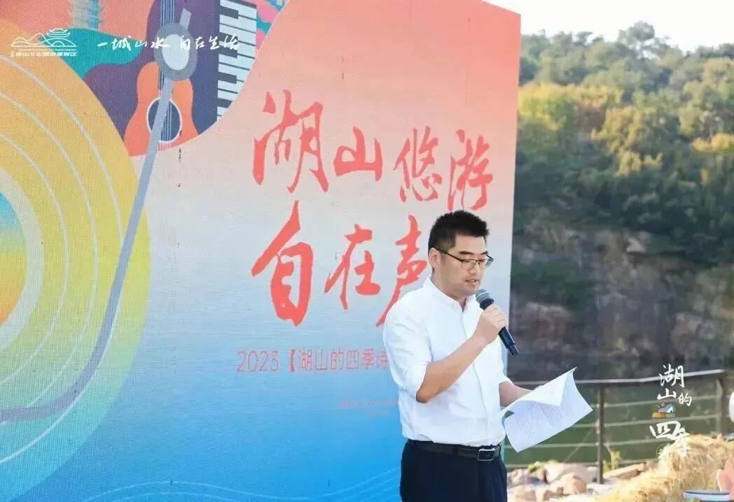 虞山文化旅游度假区管理办公室副主任吴伟上台致辞,希望大家能够在欣赏音乐的同时,能够深入了解、体验虞城湖山的自然魅力,从而激发对自然的敬畏之心和保护之情。