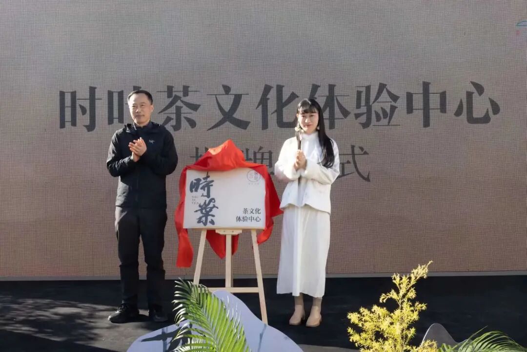 虞山街道党工委书记苏利刚与时叶茶业总经理时洁共同为时叶茶文化体验中心揭牌。