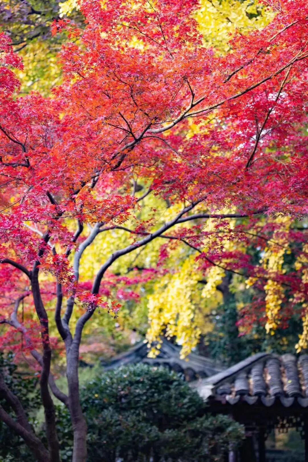 在季节的召唤下,园中银杏已纷纷转黄,翩然而落,与一树一树的红枫交相辉映,好不热闹。