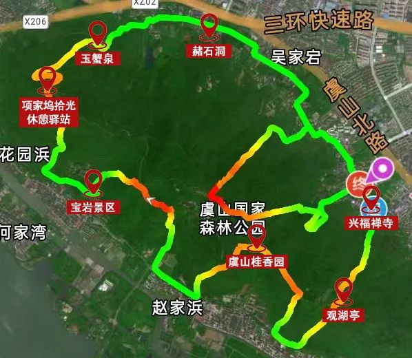 虞山大象线全长约20KM,以兴福禅寺为起终点,途经宝岩景区、玉蟹泉、赭石洞等诸多自然人文景观。脚下足迹成画,一路风光亦如画。