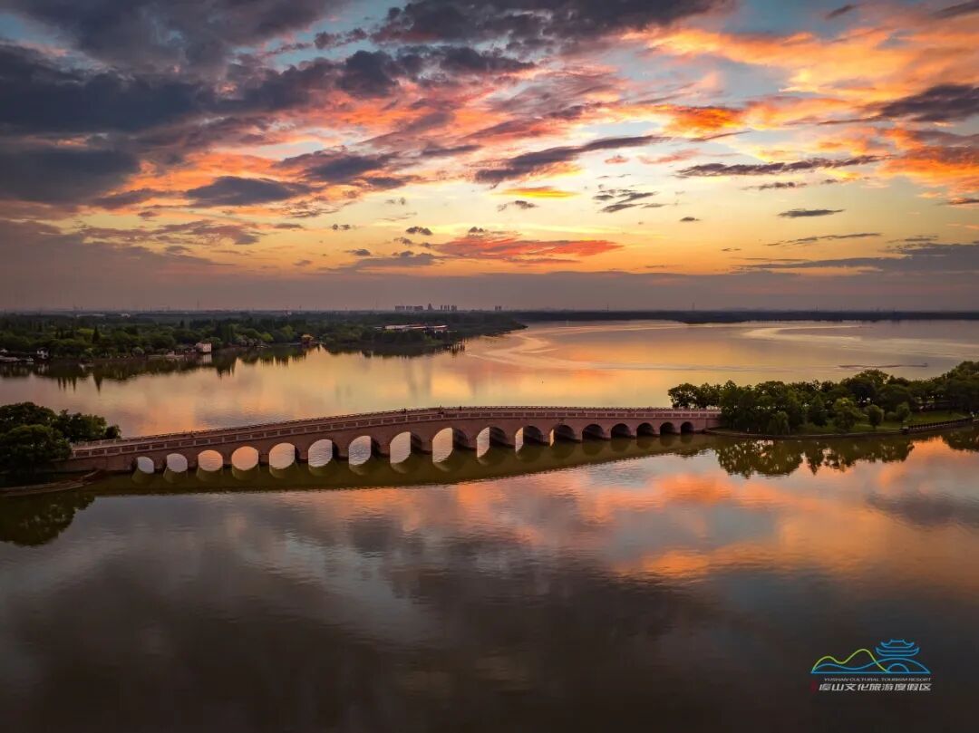 傍晚时分,尚湖等你来邂逅一场橙红色的温柔。沿湖漫步,绚烂的云霞铺在湖面,水天无界,浪漫无边。