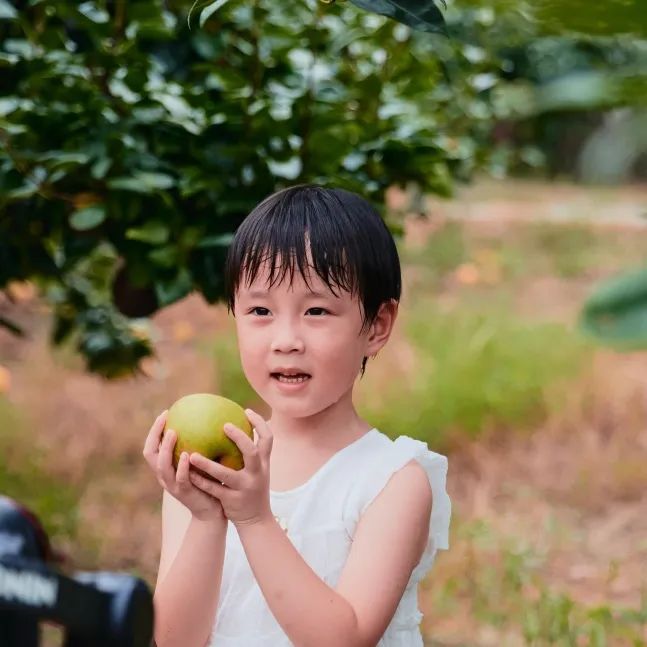 来点饭后水果吗?亲自摘的那种!孩子们兴致满满,穿梭于四宝农庄的梨园里,寻找那个“最完美”的目标。小手轻轻一拧,沉甸甸的果实就带着阳光的温度落入掌心。满满一筐,是丰收的喜悦,更是亲子时光的甜蜜。