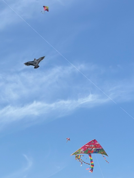 托起五彩纸鸢在碧空起舞